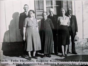 Minna and Alvin lived next door to Oma and Opa Koennecke–(Minna’s grandparents) until they built their house on the San Antonio Highway. They lived here until they were unable to physically take care of the place and had to go to Knopp Nursing Home in Fredericksburg. Alvin ended up having a stroke about a month before their 50th Wedding Anniversary. He was unable to walk and talk and was confined to a wheelchair. After this, they moved into the nursing home. Their grandchildren helped them as much as possible. They spent the remainder of their life here. They are buried at the St Mary’s Mausoleum in Fredericksburg.