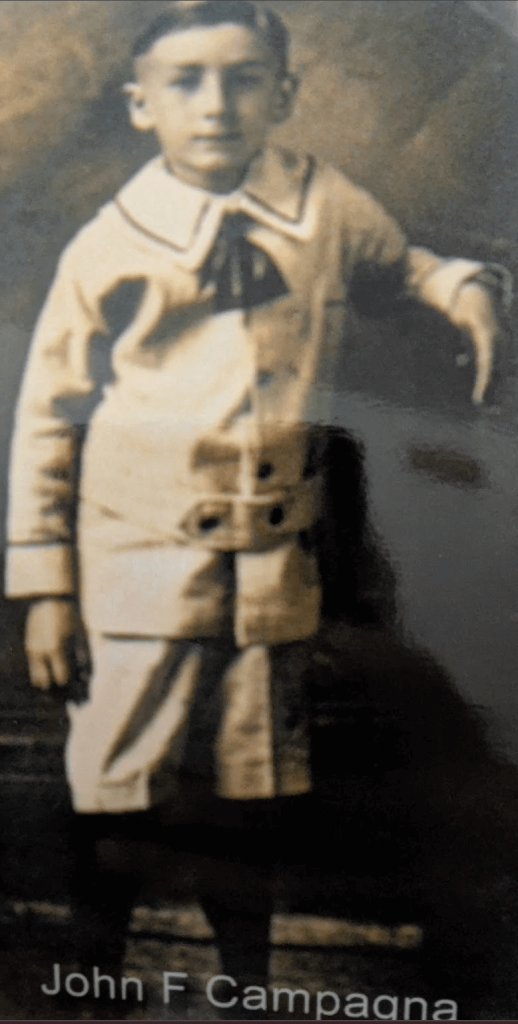 Italian families typically had a favorite son. In the Campagna family, this was Joe. Joe was a cute baby. All of the children went to free public schools. But Joe went to private school through the church. Much of the little extra money there was went to Joe’s tuition.