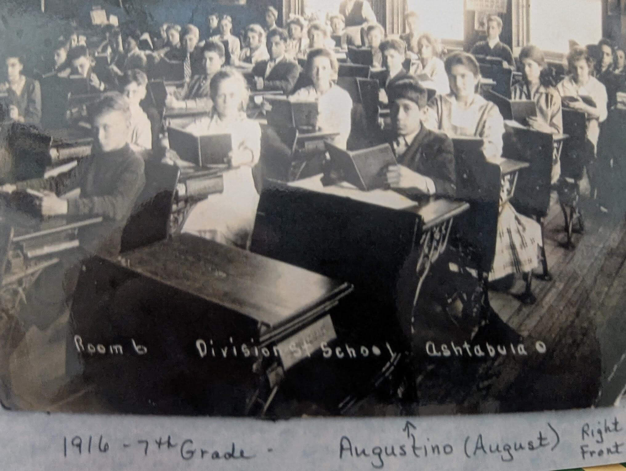 Their mother never spoke English but could understand it. She was a happy go lucky type of person. She was always jolly when we visited her. When she got older, the grandchildren from Ashtabula would “Grandma sit” while Augie would go to his Knights of Columbus meetings. John said that she seemed to be happy and easy going—but she did have a stubborn streak. When she was younger she was goimg to try to learn English, but Carsma and Joe would make fun of how she pronounced words—she had enough and said that was it. So she never did learn to speak English. Dad said that if you made her mad, you didn’t want to be near her — she had a mean temper.